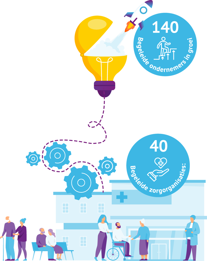 - Ondernemers helpen om de stap naar schaalvergroting te maken, zodat meer zinvolle zorg- en gezondheidsinnovaties slagen.